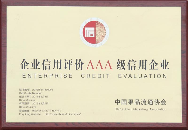 企业信用评价AAA级信用企业