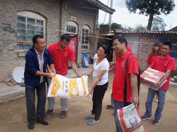 华圣三农力量助受雹灾果农重拾信心 5月初以来,延安市13个县区先后遭受冰雹、短时强降雨和大风灾害,特别是7月15日,延长、宜川等县遭受严重风雹灾害。据当地果农描述,冰雹最长时间持续半个多小时,大的犹如鸡蛋。一些果园苹果和树叶被冰雹打落满地,只剩树干和部分树枝,还有的果树树皮被冰雹剥落,果树被暴风卷倒、连根拔起,致使受灾果园大面积绝收,苹果产业受损严重。据了解,截至7月18日,延安市13个县区共70多个乡镇受灾,各类作物受灾面积10.71万公顷,绝收面积2.38万公顷,造成直接经济损失约30亿元,其中农业损失就达26亿多元。 面对严重风雹灾情 华圣三农伸援手 针对今年风雹灾害频繁且严重的情况,延安华圣三农公司积极践行 “服务农民、服务农村、服务农业”的宗旨,不忘自身担负的社会责任,上下齐动员,及时伸出援手,努力投入到帮助受灾果农抗灾减损、重拾信心,尽快渡过难关的行动中。 公司一方面积极组织货源,免费向受灾果农发放果树修复及杀菌促生长农药,并免费向重灾户赠送米面等生活必需品,帮助果农恢复生产、稳定情绪;一方面派出农技人员和基层服务员深入受灾果区开展技术指导及灾后果园管理培训工作,教授果农防灾救灾知识,动员果农采取及时剪除伤残枝及无商品价值的伤果、扶正固定歪斜果树、喷洒杀菌剂和叶面肥并追施有机肥等办法应对灾害,使果树尽快恢复树势,减轻损失。 据不完全统计,截至目前,华圣三农公司已为遭受风雹灾害的果农免费提供各类农药4000余瓶,送米面60余户近5000斤,赠送果园灾后补救措施宣传资料10000余份,价值近6万元。同时,派出技术老师940余人次,入户进园指导果农加强果树灾后管理,为明年果园正常生产奠定基础。 在此,特别鸣谢山西阳煤集团丰喜复肥分公司总经理刘广荣、副总经理卢国强为华圣三农公司组织救灾提供赞助,刘总、卢总为此专程从山西赶到陕西,商谈赞助相关事宜。 华圣三农兵分三路 慰问受灾果农 “7•15”宜川、延长严重风雹灾害发生后,华圣三农公司管理层立即向受灾区域总站人员了解当地灾情,随即就作出部署,要求受灾地区总站立即派技术人员和服务员深入受灾果区,了解灾情,掌握果农受灾第一手资料,并尽快制定出帮扶措施。同时,公司决定派出三路人员,分别由公司副总经理张林、总经理助理王建超、宜川大区经理段海涛带队,带着米面等慰问品及灾后补救措施宣传资料,深入宜川、延长风雹灾害重灾区农户家中,送上三农公司对果农的关心和慰问。 华圣果业公司副总经理刘俊宏说,作为涉农企业,我们公司就是要担负起自身的社会责任,想果农之所想,急果农之所急,不仅帮助他们增产增收、发家致富,还要在他们需要的时候站出来,帮助他们重拾信心,渡过难关,让果农感受到在灾害面前,华圣三农公司对他们始终如一的关心和帮扶。 7月20日上午,副总经理张林带队的一路人马先后来到灾情较重的宜川县秋林镇合兑村、良子伸村、屯里村、左家村等果区,仔细询问果农在这次风雹灾害中的受灾情况,了解果树受灾面积、苹果受灾程度及损失情况,并将一袋袋慰问品及灾后补救措施宣传资料送到果农手中。 在秋林镇合兑村,尽管“7 •15”风雹灾害已过去4天了,但在该村村民刘玉荣的果园看到,果树上稀稀拉拉地挂着一些果袋,不少果袋已被冰雹砸烂,露出疤痕遍体的苹果,地里散落着很多套袋、烂果子和枝叶。提起几天前的那场冰雹,刘玉荣仍心有余悸。他说:“当时的冰雹有青皮核桃大小,打得人根本就不敢出门。等到冰雹停了到果园一看,真是惨啊!地上到处都是被打下的烂套袋、烂苹果,有些树连叶子都打没了,树身、树枝伤痕累累,果子所剩无几。一家人的心血都在这12亩果园里,这一下什么都没了。” 张林一行将慰问品送到刘玉荣家中,嘱咐他尽快振作起来,按照技术老师的指导和灾后果园补救措施,积极开展生产自救,努力将灾害损失降到最低程度。 看到华圣三农公司领导专程为自家送来慰问品,并一再提醒抓紧做好灾后补救工作,刘玉荣感激地说:“你们作为一家企业,能在果农遇到天灾时,第一时间帮助我们振作精神、重拾信心,我们很感动!你们是一家有责任的好企业!” 教师“果农”赋诗赞华圣 7月20日上午,由华圣三农公司总经理助理王建超带队的慰问组先后到宜川县云岩镇西良村、马圪瘩村、永宁村、皮头村、南苏村等果区慰问了果农。 今年56岁的南苏村果农公麦亮是位待退小学教师,也是华圣三农公司的基层服务员。他家种了20亩苹果,春季以来先后遭遇大小四五次风雹袭击,特别是7月15日这次最严重,果子基本上被打光了,剩下的果子也成不了商品果,只能是卖给果汁厂了。看到公司为自家送来了慰问品,并派农技人员上门进园进行技术指导,他即兴赋诗一首表示感谢: 华圣三农这多年,六县一区转得圆。 千村万户标准园,亩产万斤把梦圆。 技术服务进田间,农资服务把关严。 遭灾弃管把工烂,不如补救看长远。 人定胜天渡难关,认可华圣赚大钱。 与此同时,华圣三农公司宜川大区经理段海涛也带领一路人马,赶赴延长县交口镇、七里村镇等风雹灾害严重的果区,为受灾果农送去慰问品,并进行果园灾后管理技术指导。