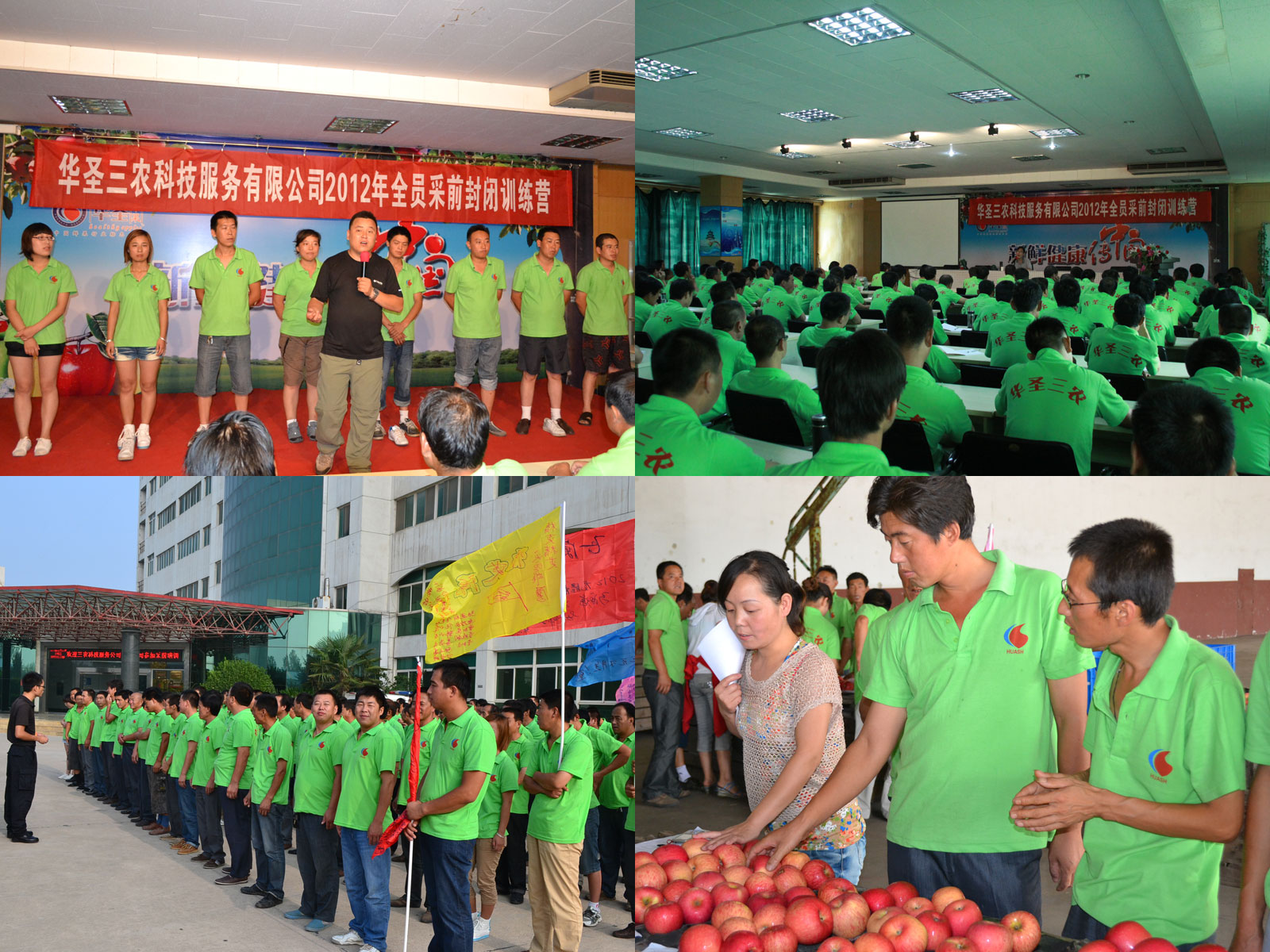 华圣三农公司8月6日至8月21日在西安华圣果业公司进行为期15天的全员封闭式培训,本次培训详细讲解和安排了苹果收购工作及农资服务工作。 为确保采购期间各项工作的顺利开展,本次培训延安华圣三农科技服务有限公司为确保培训效果特采取理论加实践的培训方法,采取军事化的管理方式来进行培训。 本次培训公司除了对内部员工进行采购前期的质量标准、运行方案、激励制度等方面的培训外,还特邀省著名树专家李丙智、陈卫星教授亲临果业公司进行培训。 通过此次培训,不但使员工学习掌握了公司的采购运作经验,而且提高了三农公司团队整体的执行力、归属感、荣誉感。