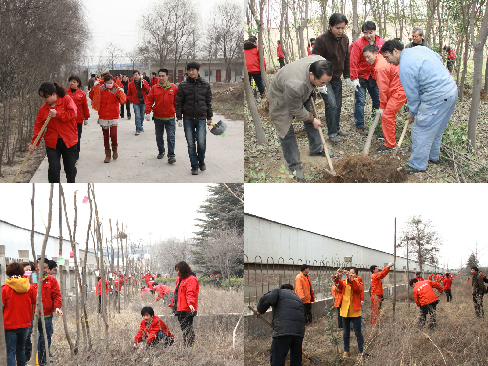 今天是3.12植树节,我司工会安排组织了员工在公司厂区内开展植树活动,栽植绿化树木美化厂区。本次活动的口号是:一人栽活一棵树,我为大院添片绿;同心协力栽棵树 ,人人贡献一片心。 上午9点由绿化于师傅给大家讲解了植树注意事项后,就一起去苗圃挖树苗,然后按株距挖坑种植,我司员工表现的干劲十足、活力四射,在于师傅的指导下不一会儿就把树种好了。最后再挂上自己的“爱心树”标牌,上书心愿寄语,原华圣的明天会更好。