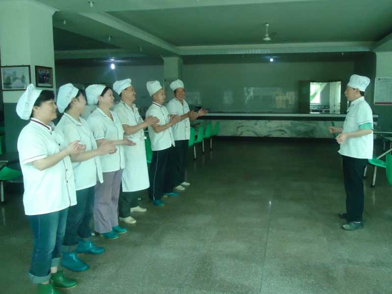 早晨,阳光透过明亮的窗子撒进华圣果业餐厅。初夏的晨风摇曳着门外那一行深绿色的红叶李树,显得那么的优美。吃早饭的同事们都已散去了…… 此刻,我们工装衣帽整齐排成一行,开始了每天的晨会,樊班长微笑着讲一天的工作内容,布置今天要做的饭菜,检查个人卫生。简短的晨会在整齐的口号“我自信!我努力!” 中结束,大家击掌加油。 是的,这不只是一个晨会,更是一种仪式。一种团结向上的姿态,这是一种鼓舞士气的仪式。这是一种积极的工作态度,也许,是忙碌的工作沉重了原本轻松的心;也许,喧嚣紧张的工作让我们感觉生活平淡得像白开水。可是今天,就在那一瞬间,我看到大家整齐的队伍,整齐的容装,整齐的口号,整齐的掌声,让我真正感觉到这是一个团结的队伍,这是一个集体的力量,这是一个齐心协力的大家庭! 午饭时间,一道道色香味香俱全的饭菜,香气四溢,白花花的米饭,面条,馒头热气腾腾。看着全公司的员工都尽情吃着笑着。我们餐厅全体人员挂满汗珠的脸上露出欣慰的笑容,这是我们给大家一道最美的风景。 作者:王红梅