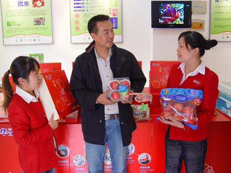 近日来,记者在古城西安看到,以华圣苹果特有的苹果红为主色调,装修简洁、清爽、高雅的"华圣果乐仕" 连锁直营店就像雨后的春笋,遍布古城西安的大街小巷。这是华圣果业打开国际高端市场之后,以全国一线城市为目标,开始了新型的经营模式,将"华圣"这一品牌延伸至消费者的身边,将农产品送进社区而迈出可喜的第一步。 截止2011年9月份,"华圣果乐仕 "连锁直营店在西安就有20家开张营业,北京有3家直营店开张营业。并且运行良好。记者在西高新区、北郊经开区、曲江开发区以及枫林绿洲等其他高中端社区华圣果乐仕直营门店看到,所销售的华圣苹果包括适宜家庭消费的小包装产品:轻量装3枚、4枚装、一提就走系列、称重产品,以及馈赠友人、家庭的礼品装、中国红礼盒、金牌优悦礼盒、华果红礼盒、9KG套箱等,来店购买华圣苹果的客人络绎不绝。 是什么原因让这些华圣果乐仕直营门店如此风生水起呢?陕西华圣果品营销管理有限责任公司经理张力告诉记者说:“:华圣果乐仕直营门店本着"让全球的消费者吃到最好的苹果"的理念和目标,以国际市场的标准倾力打造国内市场,以便让更多消费者可以安心、便利的吃上纯天然、无公害、安全放心的优质苹果。所以华圣果乐仕直营门店以高端消费群体为主要目标客户,2011年以西安市场为主,北京、上海为试点目标50家,如今年整体运行情况良好,下年度将进一步加快开店速度,争取在全国一线城市达到300家。”