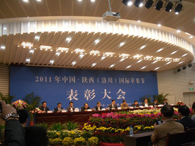 2011年10月11日至12日,中国·陕西(洛川)国际苹果节在洛川县隆重举行。出席这次活动的有农业部副部长张桃林,农业部党组成员、总经济师张玉香,陕西省副省长祝列克,省农业厅厅长王宏,省果业管理局局长王振兴,中国农产品市场协会,国家发改委、商务部等有关部门领导,以及省内外果品企业和专业合作社的代表。 本届苹果节由农业部和陕西省政府联合主办,旨在探讨果业最新发展趋势,交流最先进的技术,广泛开展贸易合作,弘扬发展苹果文化,全面提升陕西和延安苹果在国内国外的市场知名度和品牌影响力,进一步做大做强苹果产业,促进苹果产业持续健康发展。 张桃林在中国陕西(洛川)国际苹果节的开幕式上强调,陕西是我国乃至世界公认的最佳的苹果适生区产业优势明显,具备建设有国际影响力、代表国家水平的大型苹果专业批发市场的条件。苹果已成为陕西发展现代农业、繁荣农村经济、增加农民收入的支柱产业,今后农业部将一如既往地关注陕西苹果产业的健康发展,尤其是在推进标准化果园建设、加强产效衔接和市场流通等方面给予更多的支持。 祝列克说,启动建设延安市国家现代农业示范区暨国家级洛川苹果批发市场,既是加快培育优势特色产业、促进农民持续增收的重大举措,也是推进“三化”同步、实现城乡统筹的有效途径。将推动黄土高原地区苹果产业规模化、标准化、集约化发展,提升苹果产业发展水平和核心竞争力,增强国际市场开拓能力。 本次会议评选了全省优质苹果企业金奖16名,银奖16名,苹果销售明星单位16名。陕西华圣果业公司分别荣获这两项的第一名,特别受到组委会的提名表扬。公司领导带队参加了本届会议的苹果产业论坛,苹果营销会议,颁奖会议三个分会。