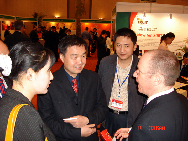 2006年4月6日至4月11日,华圣果业副总经理曹继华、尚大伟等六人组团代表公司参加了在北京举办的亚洲水果年会。 4月7日,我司代表团参加了农业部和欧洲FRESHFEL EUROPE联合举办的中国(陕西)-欧盟果品企业家圆桌会议。农业部官员向欧洲水果联盟组织通报中欧果品贸易政策和贸易情况,介绍中国苹果生产技术,包括质量标准、地理标识和有机生产等发展状况和展望。陕西果业局则重点介绍了陕西水果,特别是苹果的优势,特点,为陕西企业和欧洲企业搭建对接平台。 4月8日,亚洲水果年会正式开始。参加本次年会的有世界各地的出口商、进口商、包装厂和其它与水果相关的公司。29个参展单位中,除我公司外,还有EUREP GAP,DOLE,ENZA等众多国际知名的公司。我们向外国客商展示了公司及公司的包装、产品。我们通过介绍和公司新的宣传册的展示使客商对公司有了初步的了解,对我们的包装及产品大加赞赏。 本次年会的另一部分就是进行亚洲水果论坛,部分公司代表就中国果蔬行业、中国在全球市场中的地位、市场准入挑战等展开发言与讨论。本次论坛的内容分为四个部分,第一部分:了解中国;第二部分:中国作为供应者;第三部分:果蔬贸易;第四部分:竞争。在此次展会,为我公司结识了不少有潜力的新客户,尤其为下个果季印度及中东市场的开发奠定基础。
